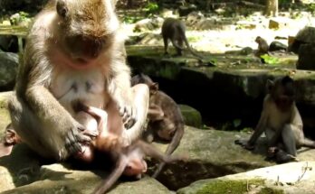 In a heartbreaking moment in the forest, a poor innocent baby monkey faces harsh treatment from a much bigger monkey. The tiny baby, still weak and fragile, cries loudly while …