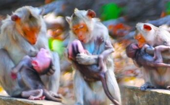 Too Hungry! Baby Trying Very Hard To Hug Mom, Hander Monkey Block Milk Her Son Read More