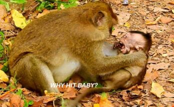 In a heartbreaking moment in the forest, a poor innocent baby monkey faces harsh treatment from a much bigger monkey. The tiny baby, still weak and fragile, cries loudly while …